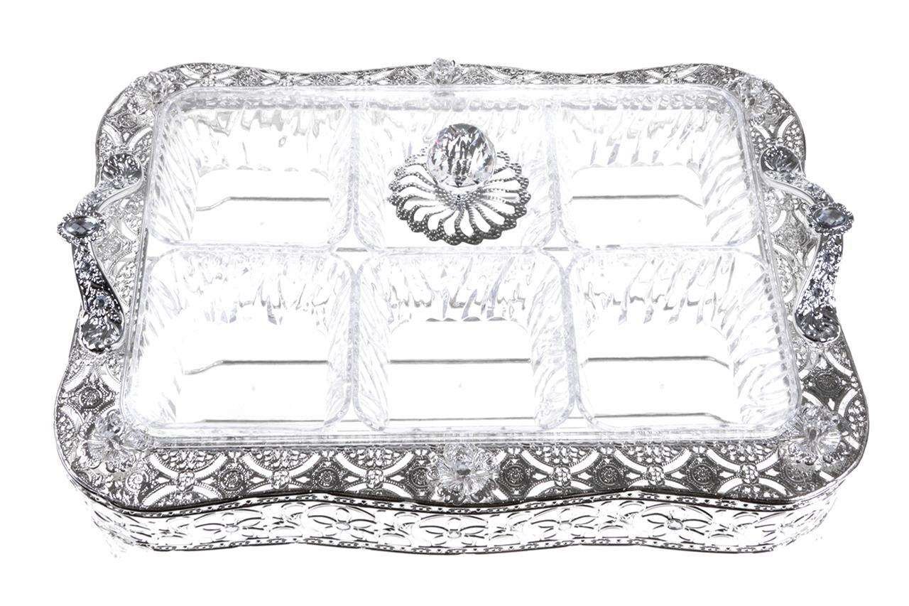 Teslimat: 1x Dekonaz Kristal 6 Bölmeli Servis Tepsisi Seti 8 Parça