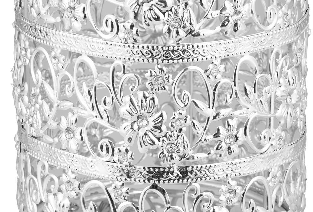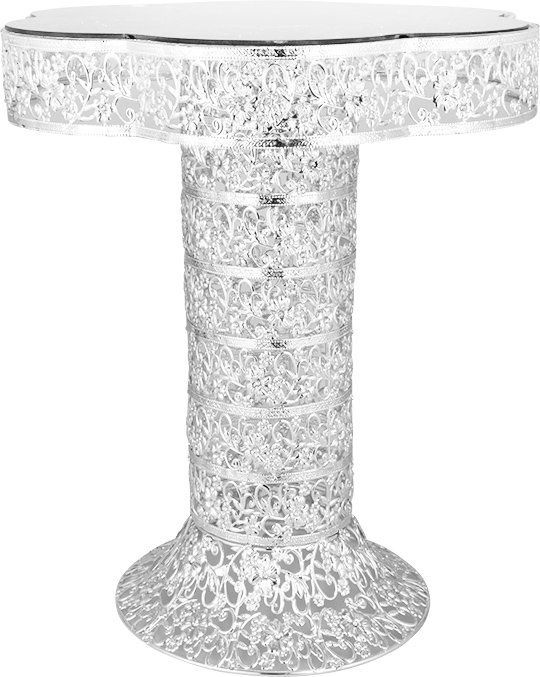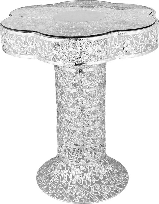 Teslimat ve Boyutlar: 1 x Dekonaz Metal İşlemeli Cam Sehpa Masa | 46x54cm | Gümüş | WH-1634