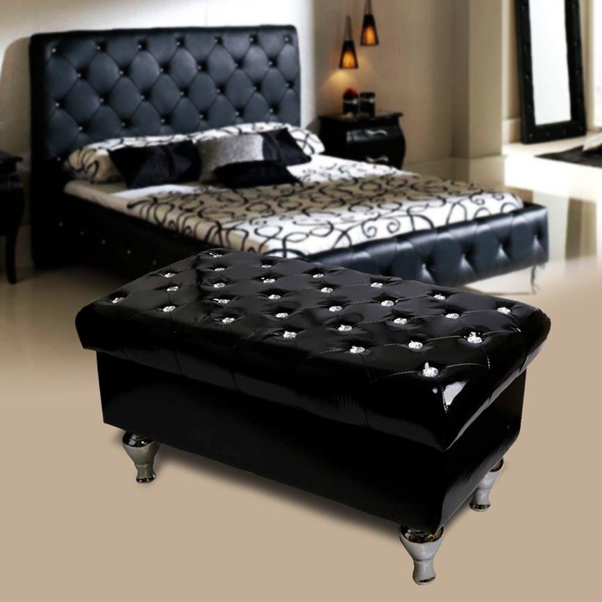 Teslimat: 1x Dekonaz Parlak Taşlı, Metal Ayaklı Sandık Puf | Siyah | 7C310165-28-Black