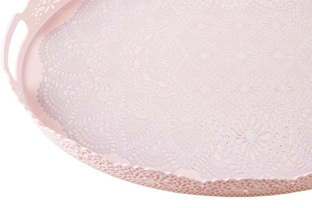 Teslimat: 1x Dekonaz Servis Oval Tepsi Dantel Motifli Baskı Pembe 50x38 cm