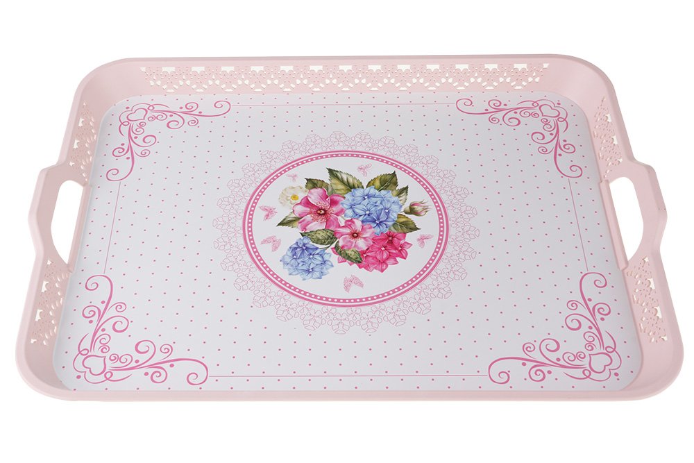 Teslimat: 1x Dekonaz Servis Tepsisi Çiçekli Kelebek Pembe 52x38 cm