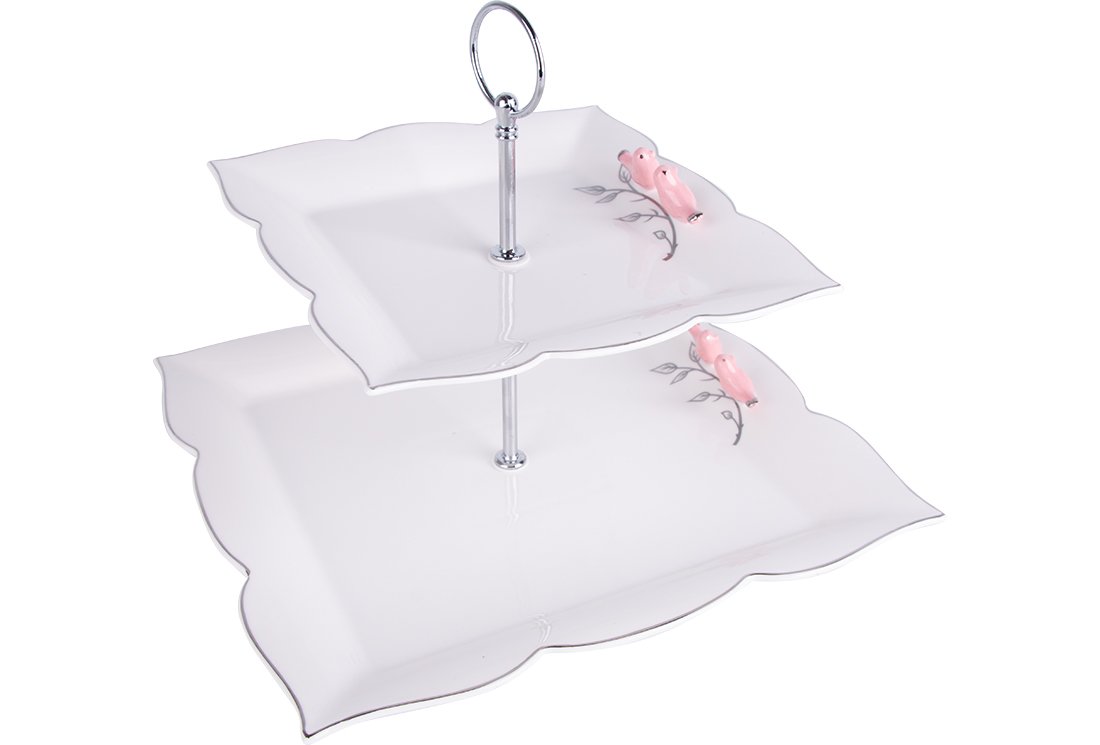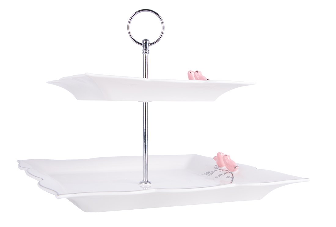 Teslimat: 1x Dematex 2 Katlı Porselen Servis Tabağı | Kare | DTX-54-KARE