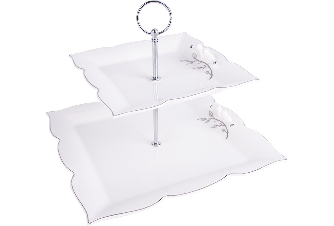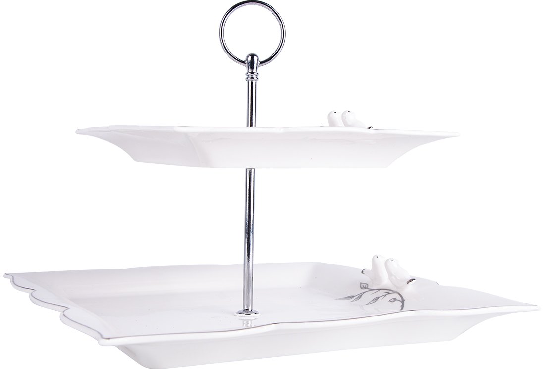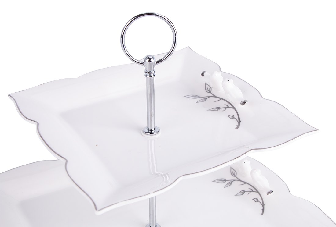 Teslimat: 1x Dematex 2 Katlı Porselen Servis Tabağı | Kare | DTX-56-KARE