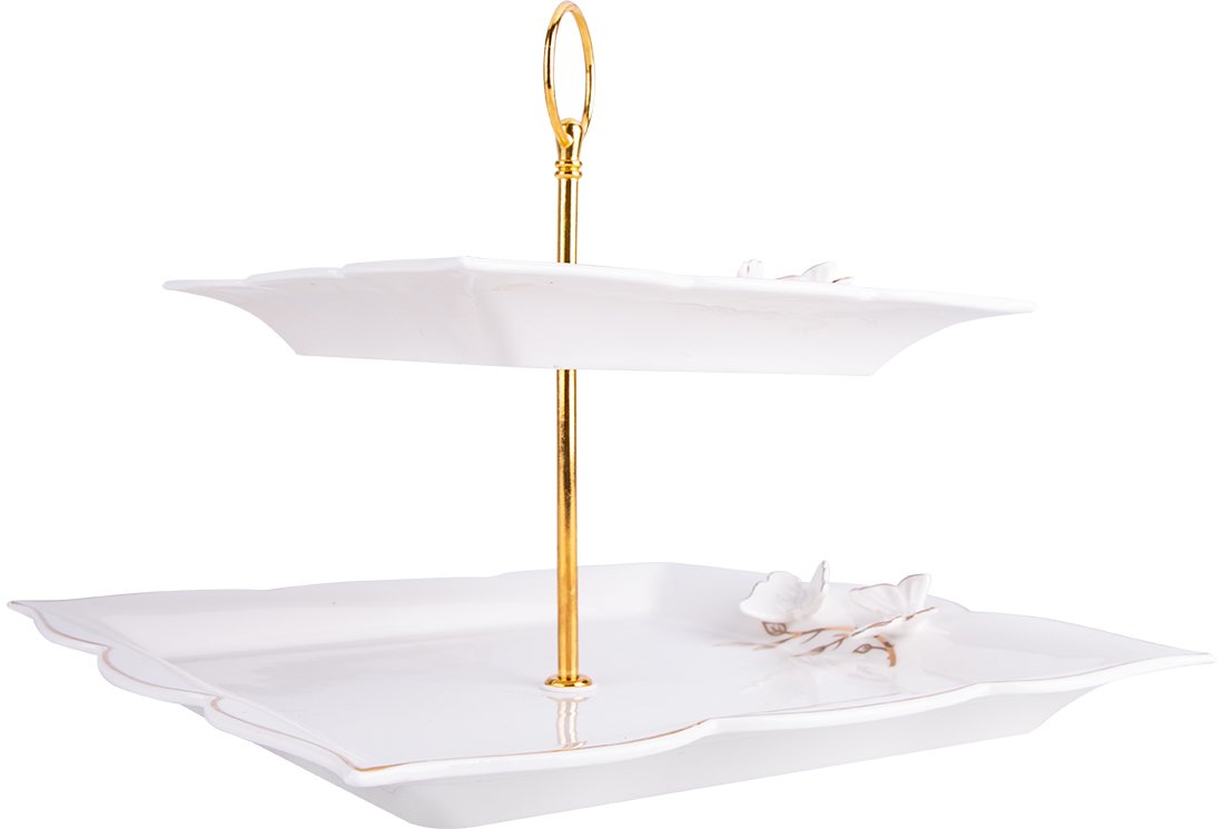 Teslimat: 1x Dematex 2 Katlı Porselen Servis Tabağı | Kare | DTX-59-KARE