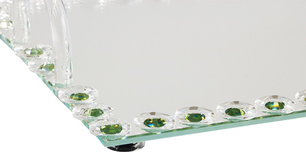 Teslimat: 1x Dematex Aynalı Kristal Taşlı Lüks Tepsi - Kulplu | Gümüş