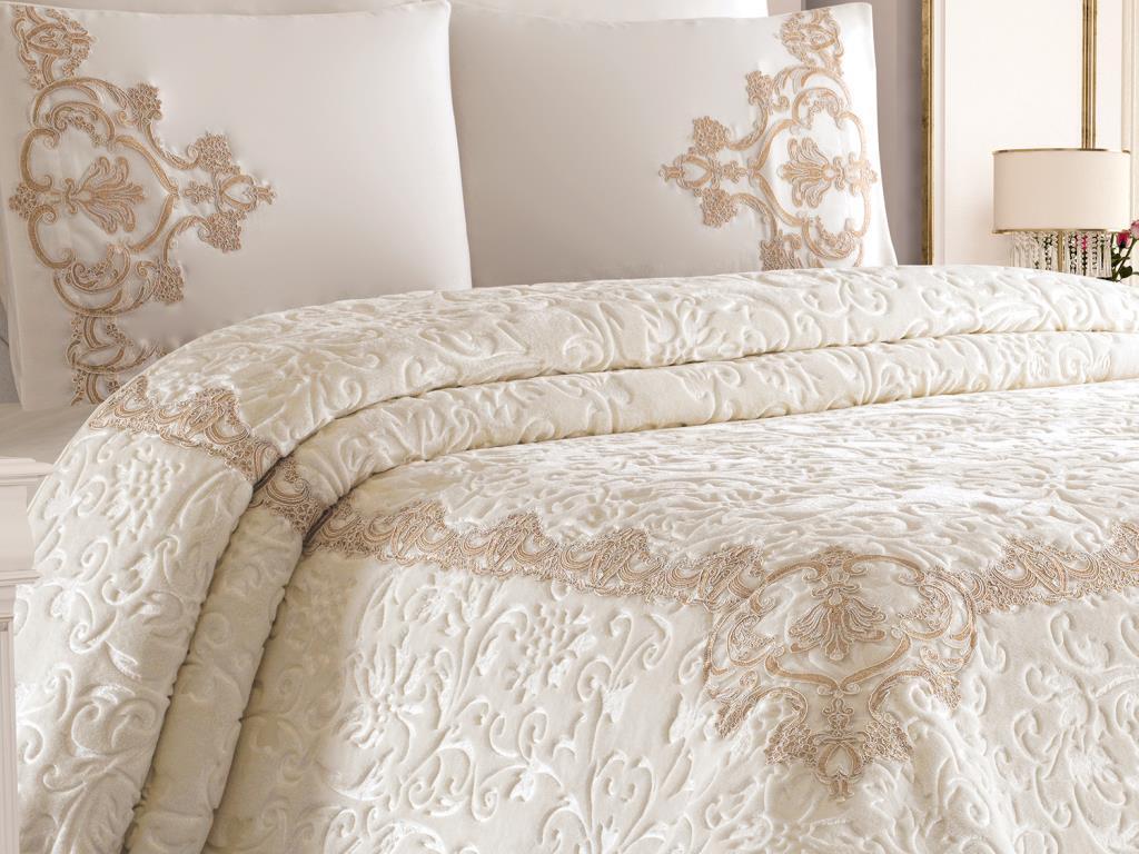 Ürün Adı: "Fransız Güpürlü Melissa Battaniye Takımı Krem"