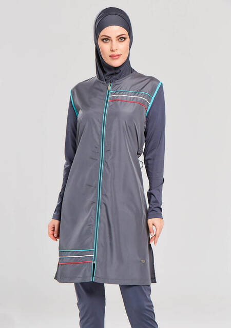 Ürün Adı: "Adasea 1154-19 Antrasit Tam Kapalı Tesettür Mayo"