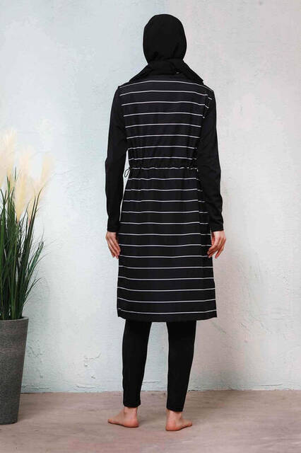 Haşema Nehar Beyaz Çizgili Boru Paça Siyah Tesettür Mayo Çise-346 N-6083-20