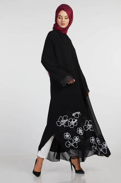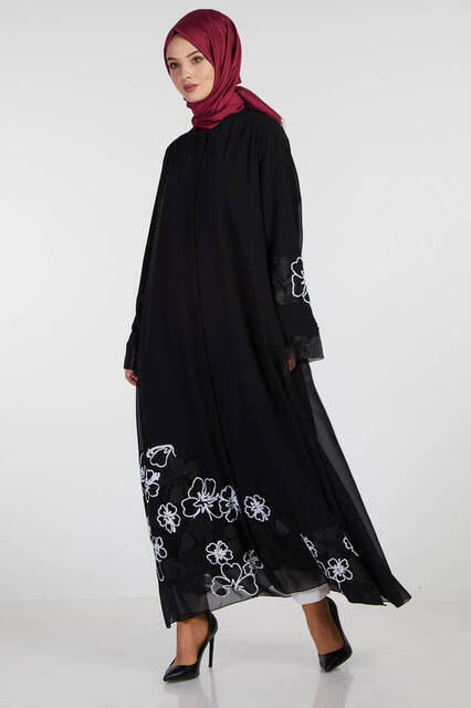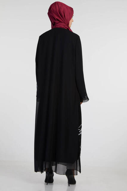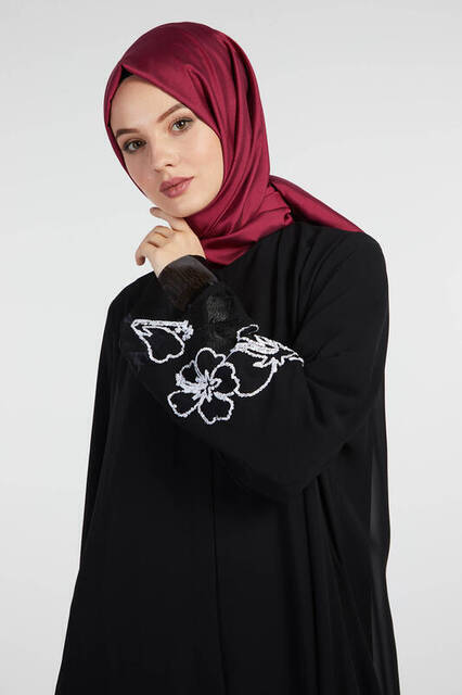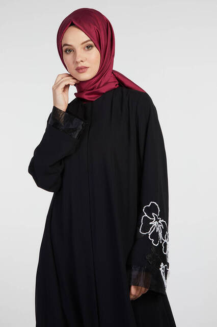 Şükran 35926 Kolu Güllü Ferace Siyah