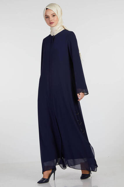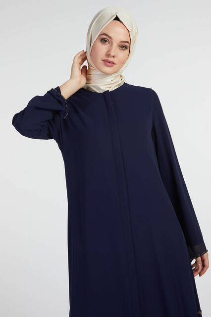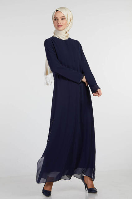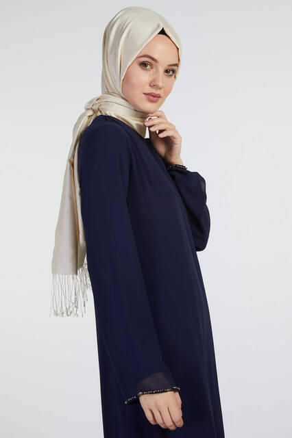 Ürün Adı: "Şükran 35886 Gümüş İncili Ferace Lacivert"