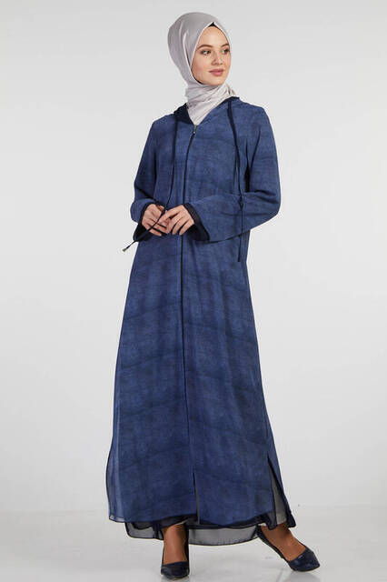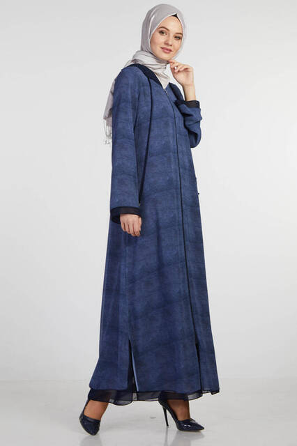 Ürün Adı: "Şükran 35934 Kapişonlu Şifon Mavi Ferace"