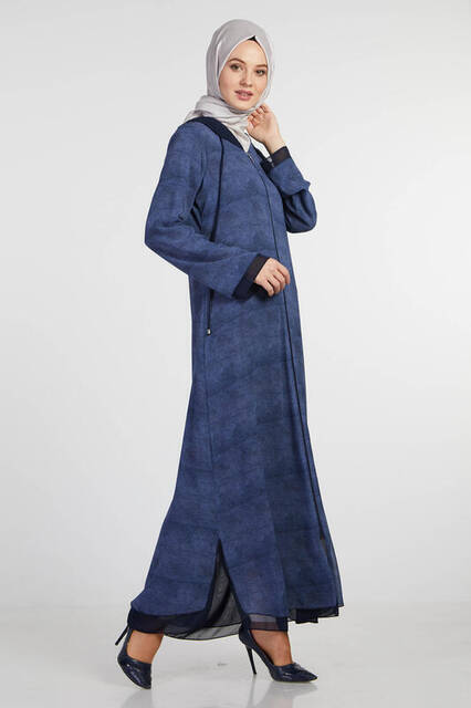 Şükran 35934 Kapişonlu Şifon Mavi