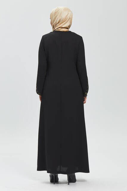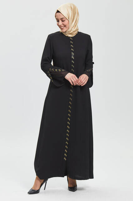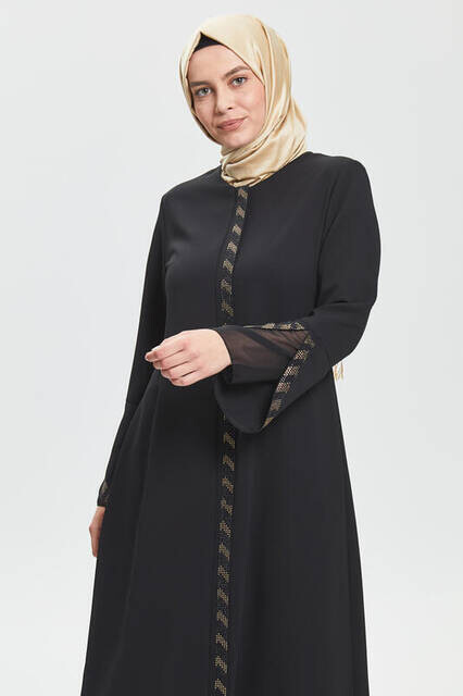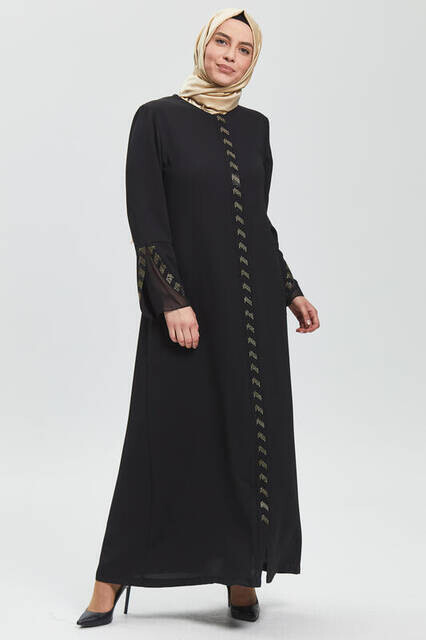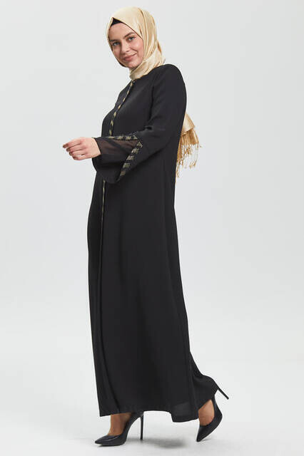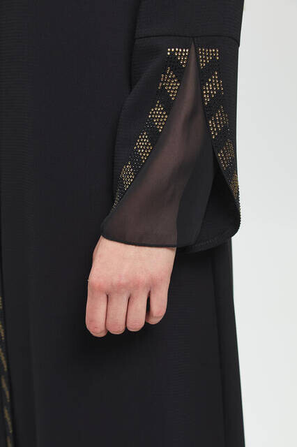 Ürün Adı: "Derin Siyah Kolu Perde Taşlı Ferace 9073-20"