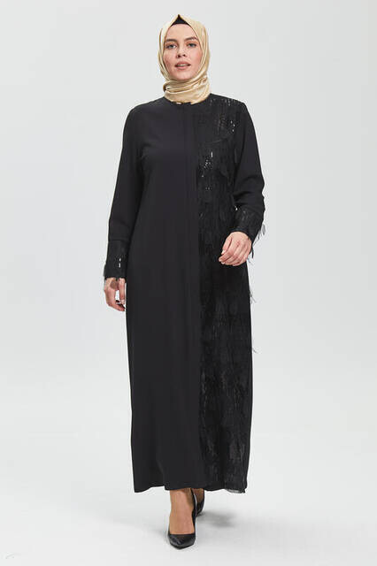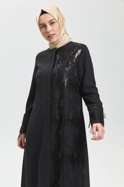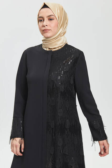 Ürün Adı: "Derin Siyah Yarım Tüy Pul Ferace 9091-20"