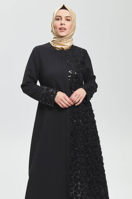 Derin Siyah Yarım Payet Ferace 9121-20
