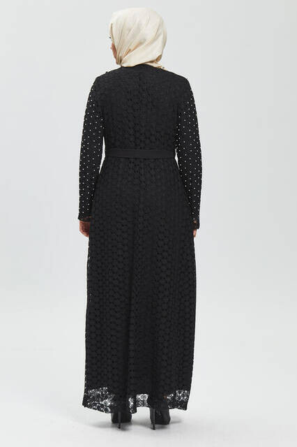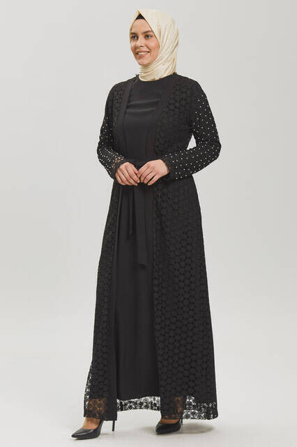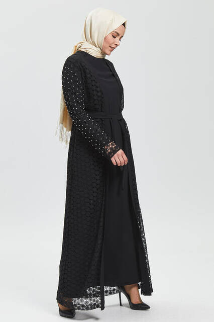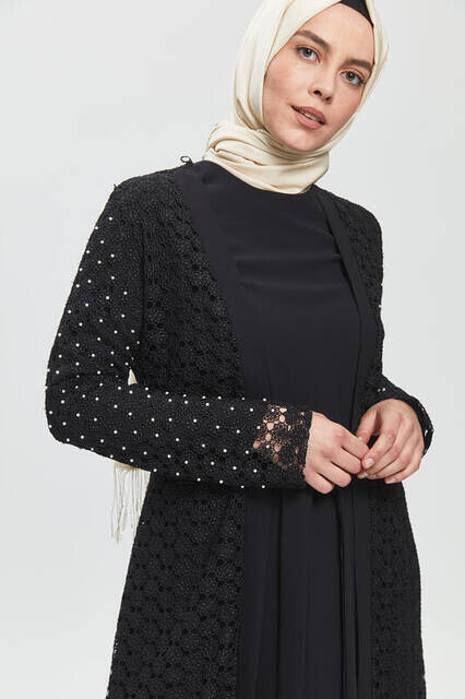 Ürün Adı: "Derin Siyah Güpür İncili Ferace 8029-20"