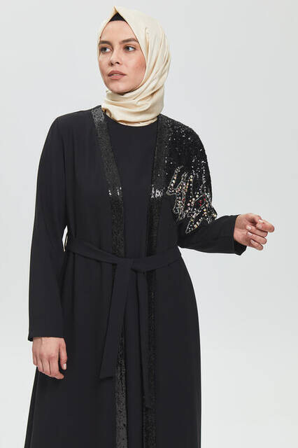 Ürün Adı: "Derin Siyah Tek Omuz İşlemeli Ferace 8021-20"