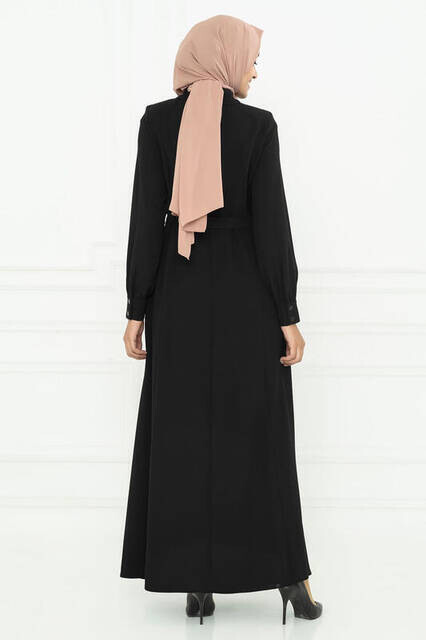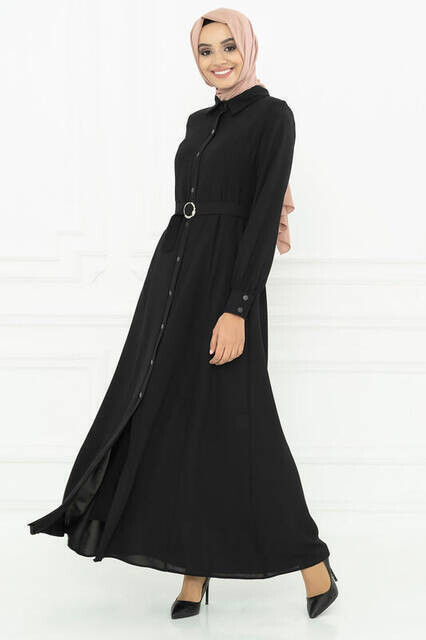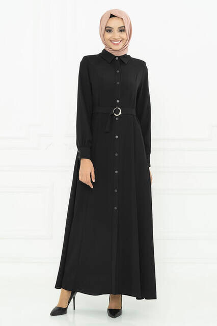 Ürün Özelliği : Kuplu bele oturan kalıba sahiptir. Önleri çıtçıtlı, hakim yakalı, belinde kendi kumaşından tokalı kemere sahip yazlık ferace.