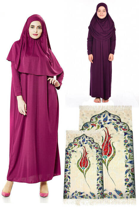 Buna dair başka bağlantılar "Anne Kız Tek Parça Namaz Elbisesi Seccade Set 1"
