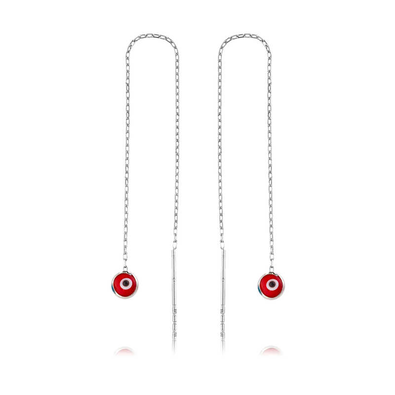 Gümüş Zincirli Kırmızı Nazar Küpe