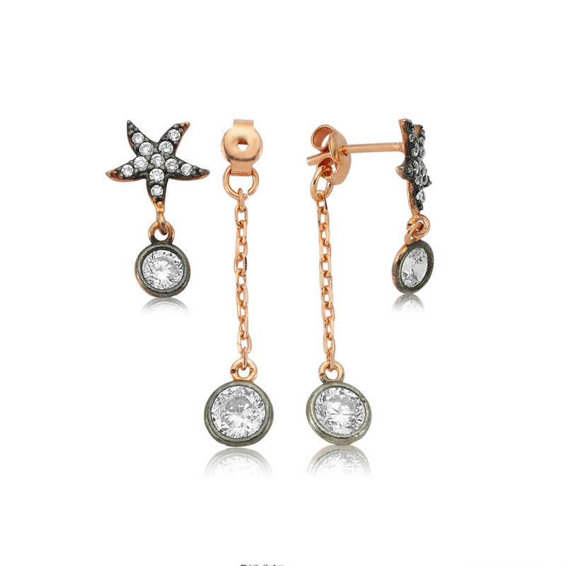 Deniz Yıldızı; ilahi aşkı, ilahi rehberliği, ilhamı, parlaklığı ve umudu sembolize eder. Gökyüzünden denizlere düşmüş deniz yıldızı ile ruhunuz umut ve aşkla dolsun. Gümüş deniz yıldızı küpe ayrıca şıklığı ve zarafeti yansıtıyor. Her dönem sevilen bu sade ve şık küpeyi; doğum günü hediyesi, sevgililer günü hediyesi veya annelere hediye olarak özel günlerde tercih edebilirsiniz. Zincirli deniz yıldızı bayan küpe, 925 ayar gümüşten imal edilmiştir. Gümüş küpe üzerine rose kaplama yapılmıştır. Rose kaplama yapılan küpeler parlaklığını uzun süre muhafaza eder, gümüş rengini pembe renge dönüştürür ve oksitlenmeyi geciktirir. Tüm gümüş bayan küpelerinde olduğu gibi bu gümüş deniz yıldızı bayan küpe de tamamı el emeği ile üretilmiştir. Gümüş ve değerli taşlar nedeniyle belirtilen ortalama ürün ağırlığında ± %10 sapma olabilmektedir.