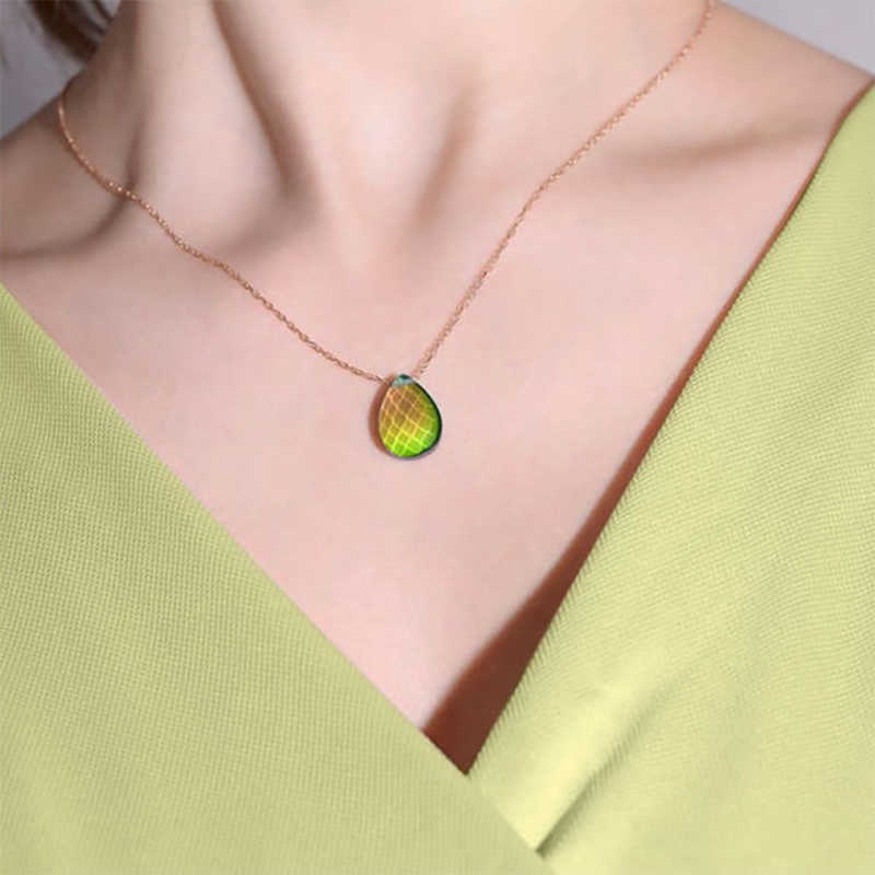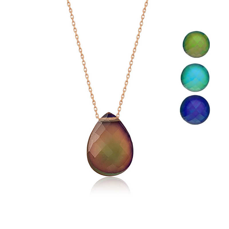Damla şekli yürek, kalp anlamına gelirken aynı zamanda cesaret ve korkusuzluk anlamı da taşır. Acıma, duygusal yön ve ruhsal bağ anlamları da taşımaktadır. Yürek damlası denilen bu şekil, kalbin ikiye ayrılmış parçalarını temsil eder. Ürünün taşı vücut ısısına göre renk değişikliği göstermektedir. Ürünün özelliğinin kaybolmaması için su ile temasından kesinlikle kaçınılmalıdır. Gümüş his taşı kolye ile şıklığınızı bir adım daha öne çıkaracaksınız. Ürünlerimizin tamamı el emeği ile üretilmiştir. Gümüş ve değerli taşlar nedeniyle belirtilen ortalama ürün ağırlığında ± %10 sapma olabilmektedir.