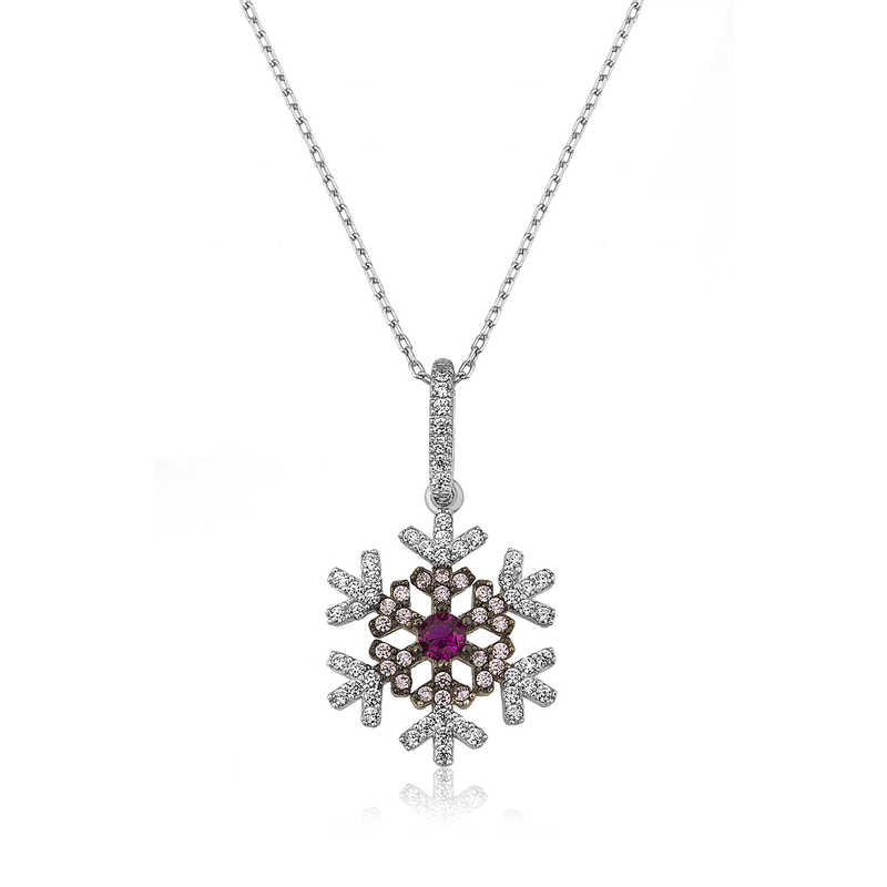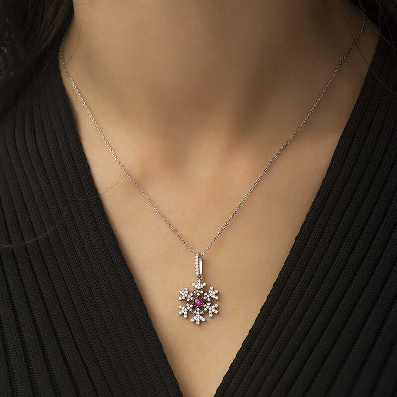 Kadınların ışıltısı, berraklığı kar tanesine benzetilip özel olarak tasarlanmıştır. Kar tanelerinin her birinin bayanlar gibi eşsiz ve ayrı kıymette olması onları özel kılan bir diğer özelliktir. Asilliği her dönemde dikkat çekmeyi başarmıştır. Bunun yanında insanların tıpkı kar taneleri gibi birbirlerine zarar vermeden de mutlu bir şekilde yaşayabileceklerini sembolize etmektedir. Bu şık kolye; doğum günü hediyesi, sevgililer günü hediyesi veya annelere hediye olarak özel günlerde tercih edilebilecek mükemmel bir seçenektir. Kolye, 925 ayar gümüşten imal edilmiştir. Gümüş üzerine rodyum kaplama yapılmıştır. Rodyum kaplama yapılan ürünler parlaklığını uzun süre muhafaza eder ve oksitlenmesi gecikir. Tüm gümüş bayan kolyelerde olduğu gibi bu gümüş kar tanesi bayan kolye de tamamı el emeği ile üretilmiştir. Gümüş ve değerli taşlar nedeniyle belirtilen ortalama ürün ağırlığında ± %10 sapma olabilmektedir.