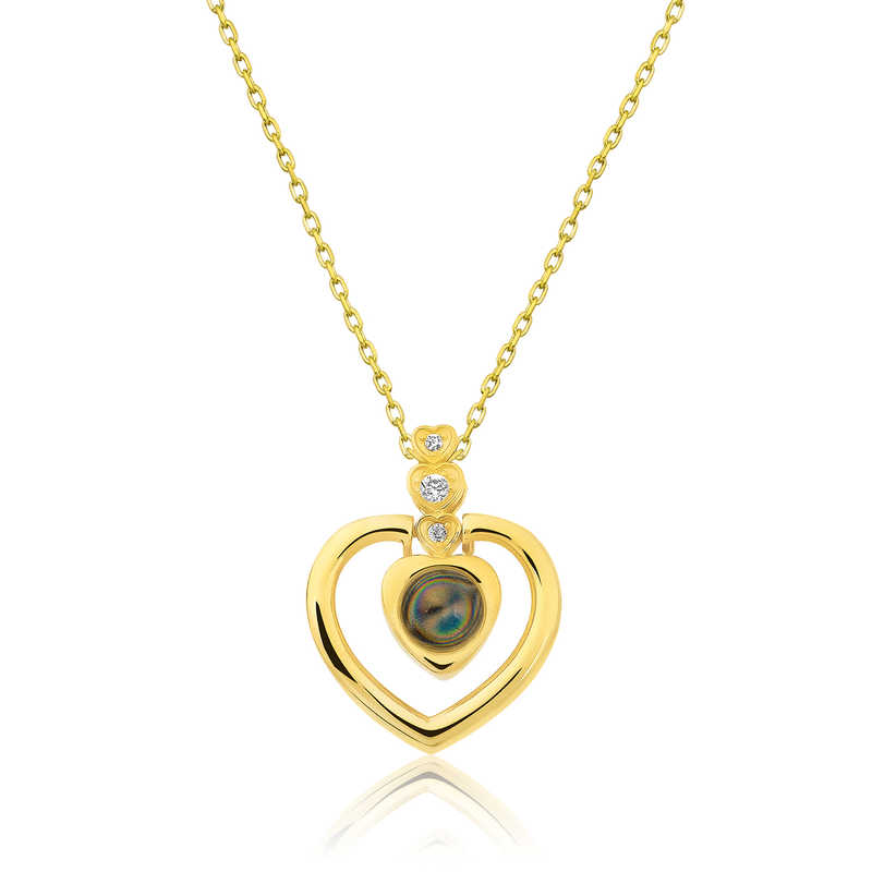 Kalp simgesi daima koşulsuz sevginin ve aşkın sembolü olmuştur. Dini öğretilerde ise kalbin gücü sınırsızdır. Çünkü kalp Yaradanın evi, bizim ise evrene açılan gerçeklik kapımızdır. 100 dilde seni seviyorum yazılı gümüş kalp kolye sizi ve sevgilinizi temsil edecek en şık ve anlamlı kolyelerden biridir. Kolyemizin orta kısmında bulunan taş içerisinde 100 farklı dilde seni seviyorum yazısı bulunmaktadır. Bu yazı karanlık bir ortamda ışık vasıtası ile yansıtılabilir ve görülebilir. Telefonun flaşını görseldeki yuvarlak alana karanlık ortamda tutarak duvara 100 dilde seni seviyorum yazısını projeksiyon gibi yansıtabilirsiniz. Bu şık gümüş 100 dilde seni seviyorum kalp bayan kolye; doğum günü hediyesi, sevgililer günü hediyesi veya annelere hediye olarak özel günlerde tercih edilebilecek mükemmel bir seçenektir. Gümüş zirkon taşlı 100 dilde seni seviyorum kalp bayan kolye 925 ayar gümüşten imal edilmiştir. Bu kolye üzerine altın kaplama yapılmıştır. Altın kaplama yapılan gümüş 100 dilde seni seviyorum kalp bayan kolye modelleri parlaklığını uzun süre muhafaza eder. Tüm gümüş kolye modellerinde olduğu gibi gümüş 100 dilde seni seviyorum kalp bayan kolye modeli de el emeği ile üretilmiştir. Gümüş ve değerli taşlar nedeniyle belirtilen ortalama ürün ağırlığında ± %10 sapma olabilmektedir.