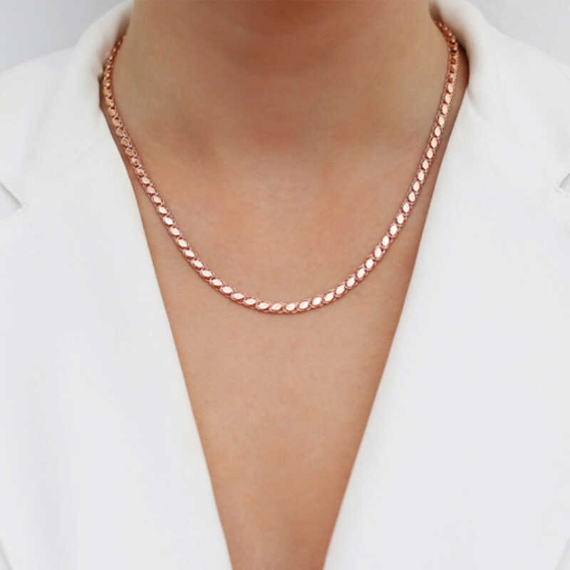 Günlük hayatında da bakımlı görünmek isteyen kadınların tercihi zincir kolyeler, en sade kıyafetlere dahi şıklık katıyor. Pullu arpa zincir kolyeler zarifliği ve şıklığıyla göz doldurmaya devam ediyor. Şık ve spor her kombinle kullanılabilen geniş kullanım alanına sahip zincir kolyeler, tarzınızı özgürce oluşturmanızı sağlıyor. Gümüş pullu arpa zincir üzerine rose altın kaplama yapılmıştır. Rose altın kaplama yapılan gümüşün rengi, pembe renge dönüşmektedir. Tüm gümüş modellerimizde olduğu gibi gümüş rose pullu arpa zincir modeli de tamamen el emeği ile üretilmiştir. Gümüş ve değerli taşlar nedeniyle belirtilen ortalama ürün ağırlığında ± %10 sapma olabilmektedir.