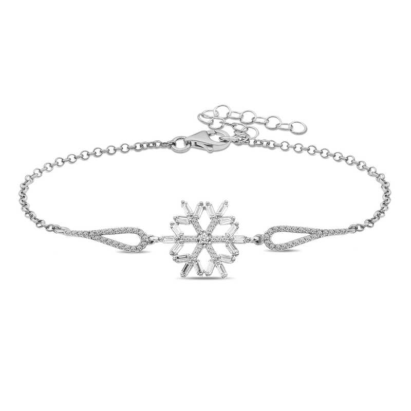Teslimat: 1 x Gümüş Baget Taşlı Kar Tanesi Bileklik