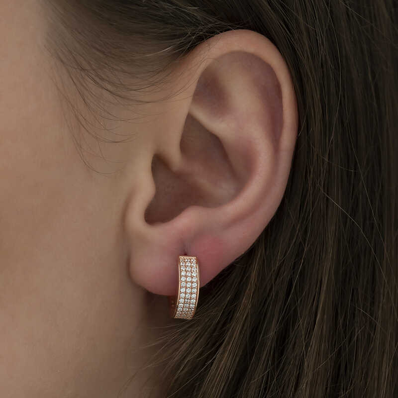 Ürün Adı: "Gümüş Rose Sıra Taşlı Halka Küpe"
