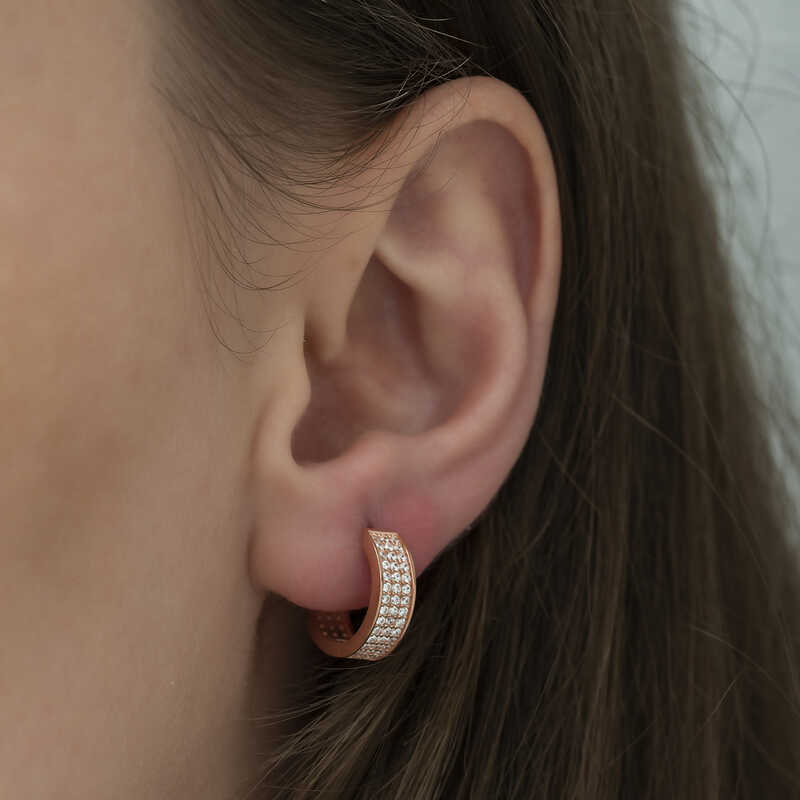 Teslimat: 1 x Gümüş Rose Sıra Taşlı Halka Küpe