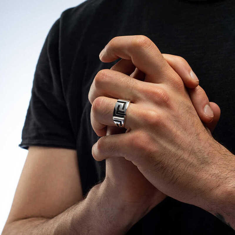 Gümüş Zikzak Desenli Erkek Yüzük