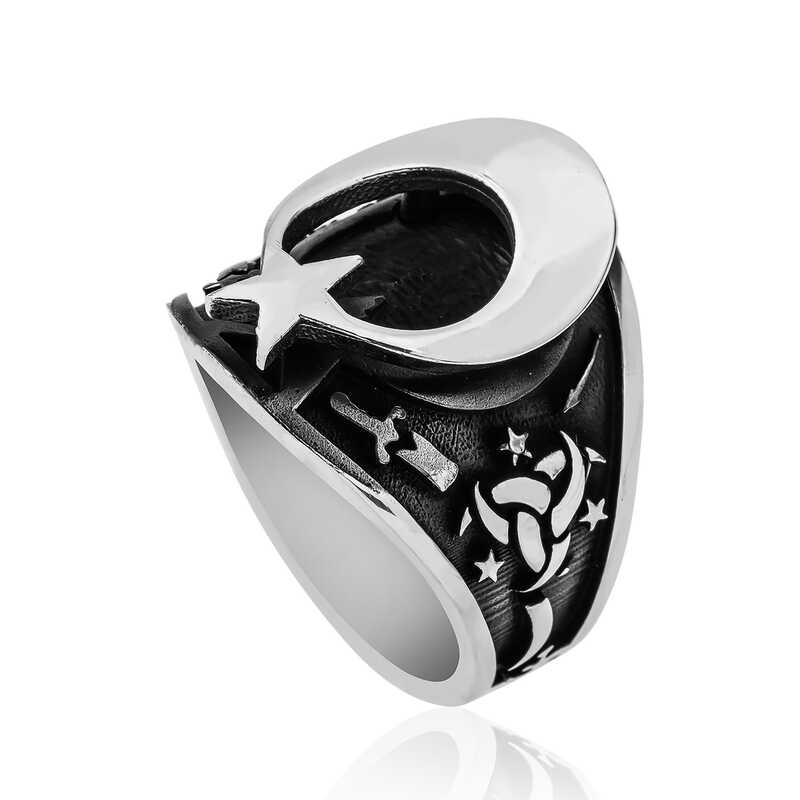 Teslimat: 1 x Gümüş Teşkilat-ı Mahsusa Armalı Ay Yıldız Erkek Yüzük