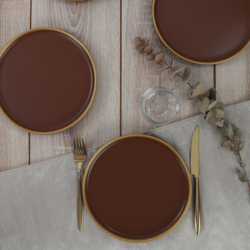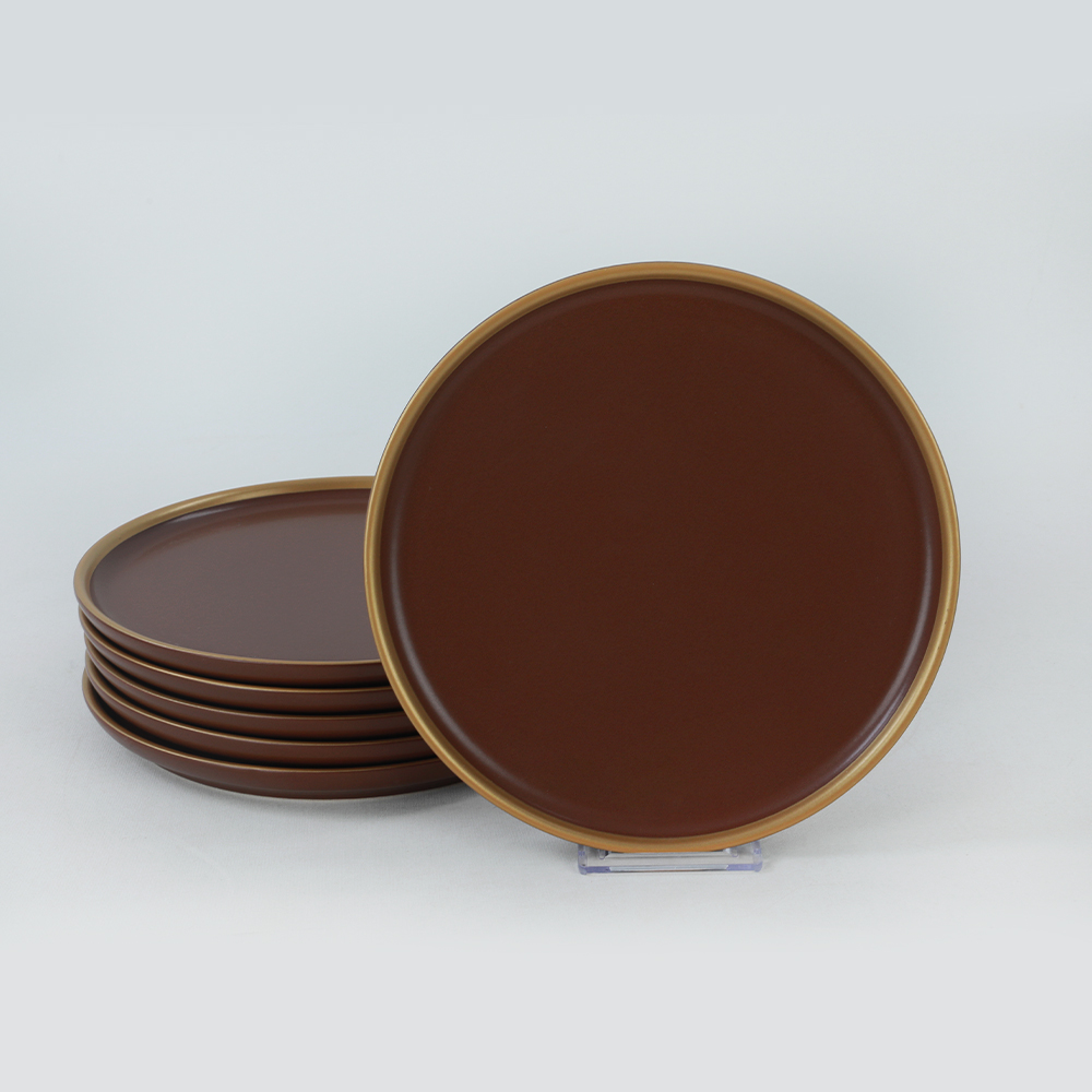 Ürün Adı: "Nordic Gold Mat Acı Kahve Pasta Tabağı 22 Cm 6 Adet - 955 | Keramika"