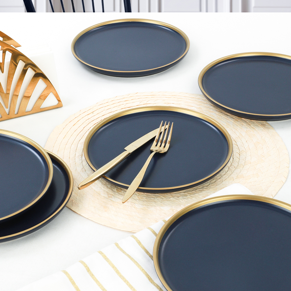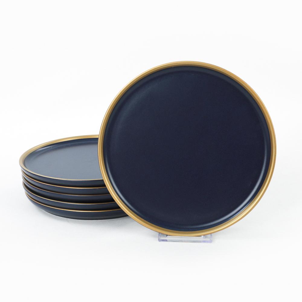 Ürün Adı: "Nordic Gold Mat Lacivert Pasta Tabağı 22 Cm 6 Adet | Keramika"