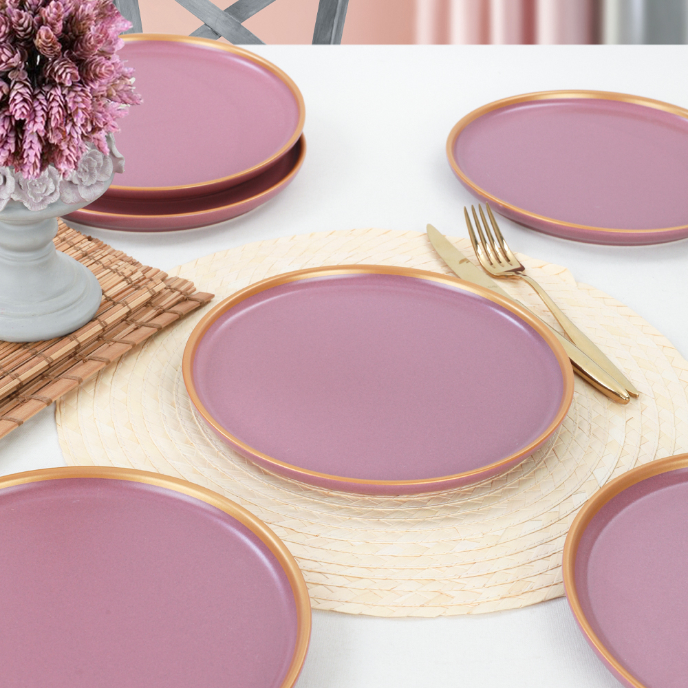 Ürün Adı: "Nordic Gold Mat Violet Pasta Tabağı 22 Cm 6 Adet | Keramika"