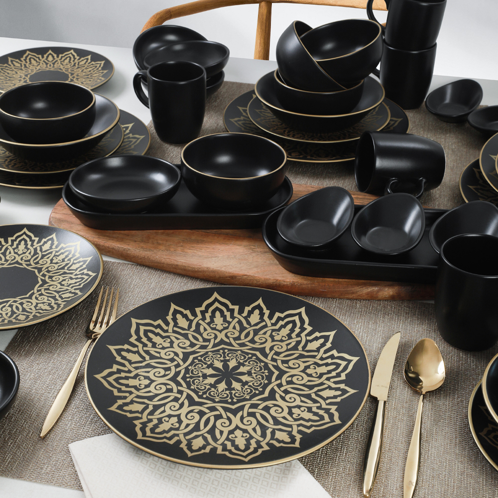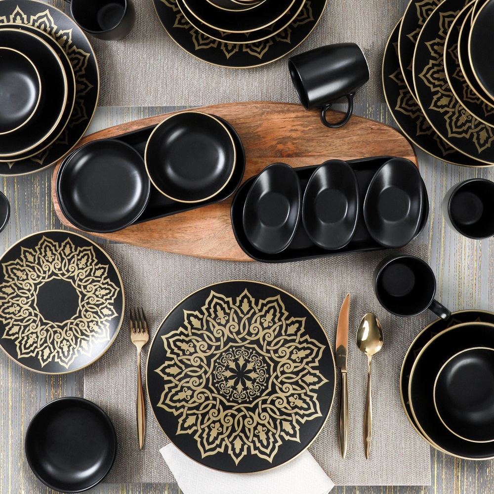 Topkapı Mat Siyah Yemek/Kahvaltı Takımı 44 Parça 6 Kişilik | Keramika