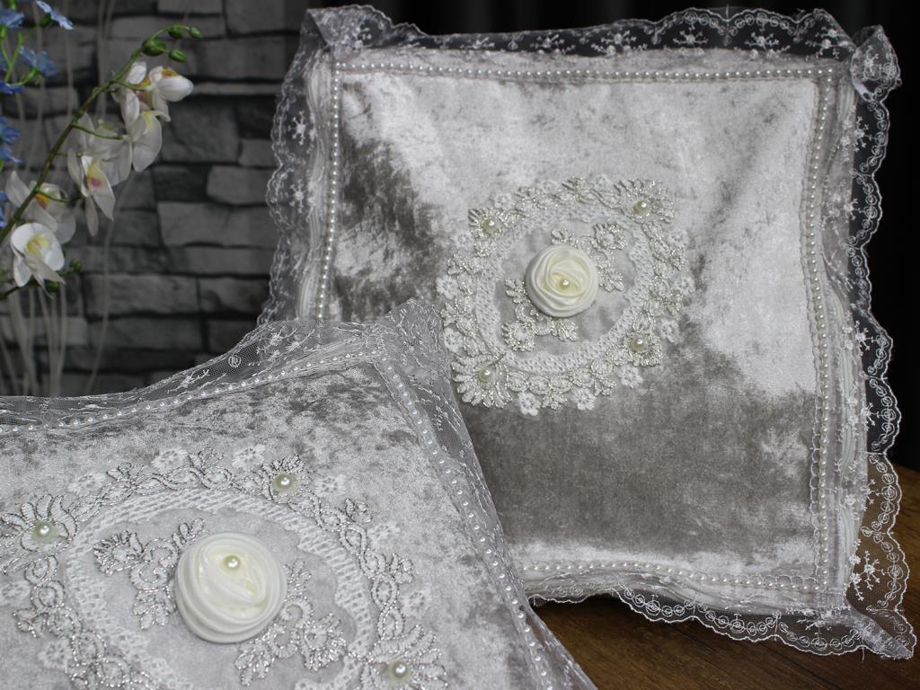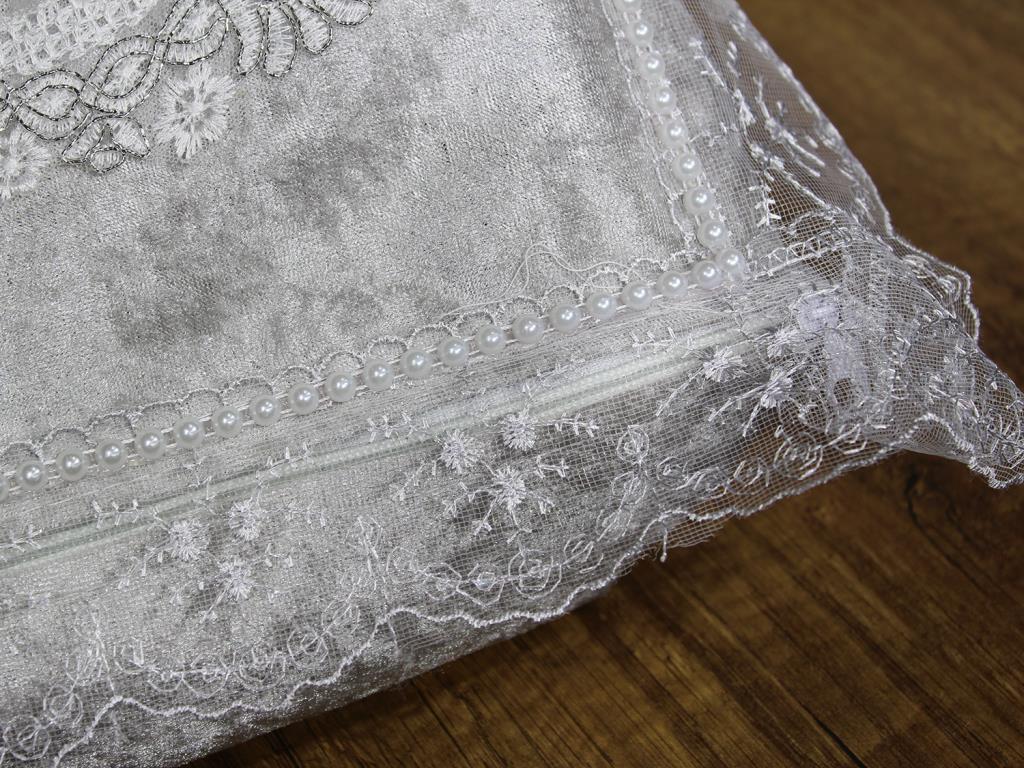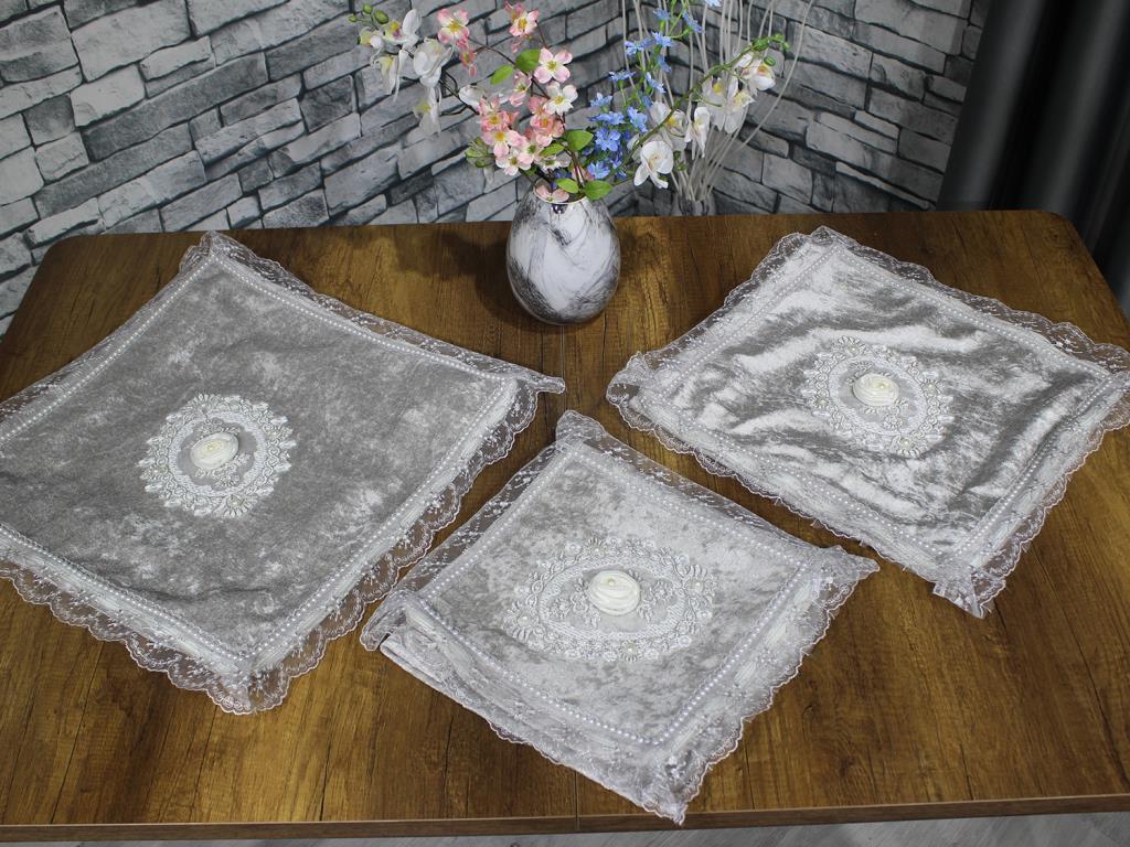 Ürün Adı: "Çeyiz Diyarı Fransız Güpürlü Nazende Kadife 3 Lü Bohça Seti Gri"