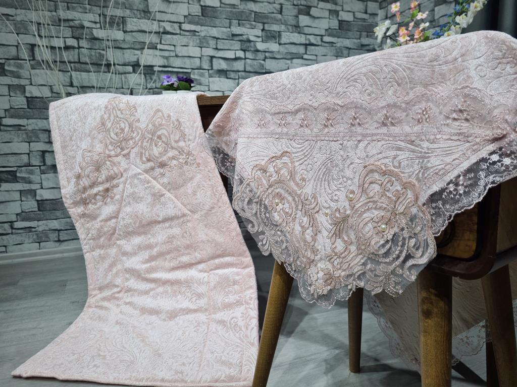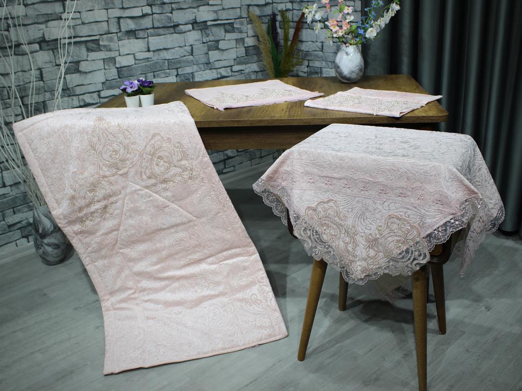 Ürün Adı: "Çeyiz Diyarı Fransız Güpürlü Nesli Kadife 4 Lü Bohça Seti Pudra"