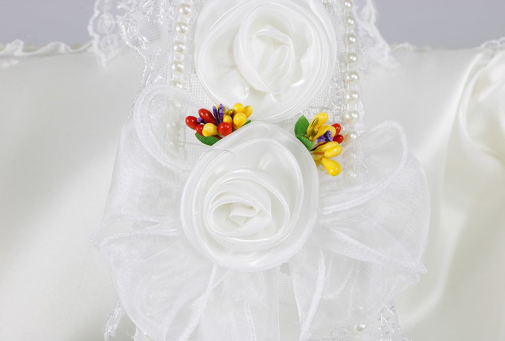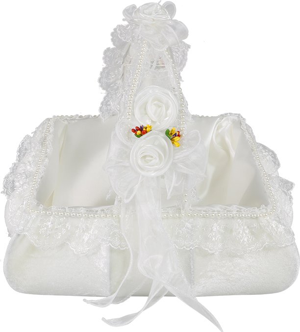 Teslimat ve Boyutlar: 1 x Dekonaz Kadife Kına Düğün Nişan Sepeti | Dantel İşlemeli | Kare | Beyaz | BK-006-white