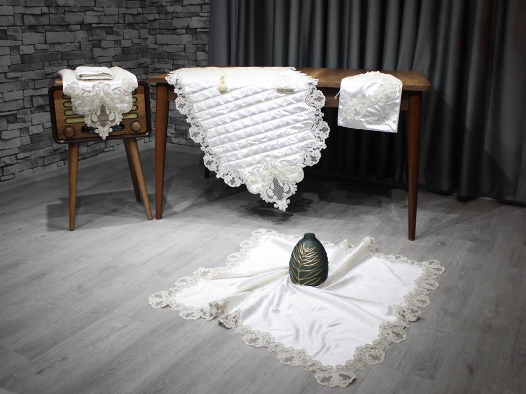 Ürün Adı: "Fransız Güpürlü Birce Kapitoneli Kadife 7 Parça Bohça Seti Krem"