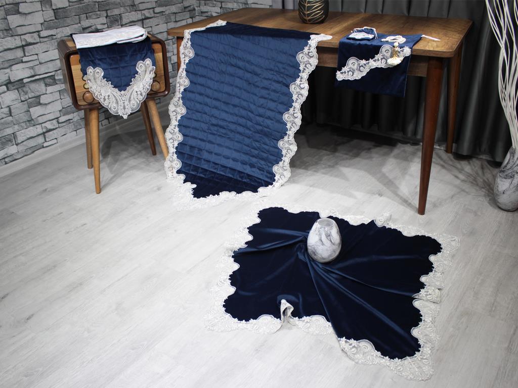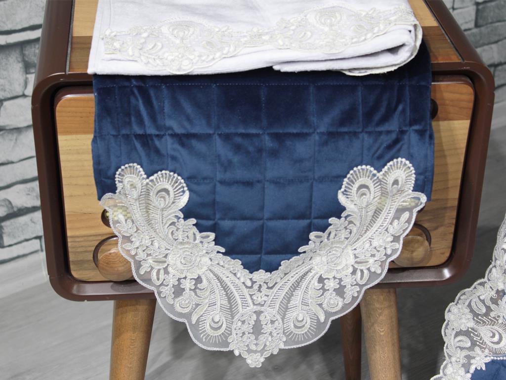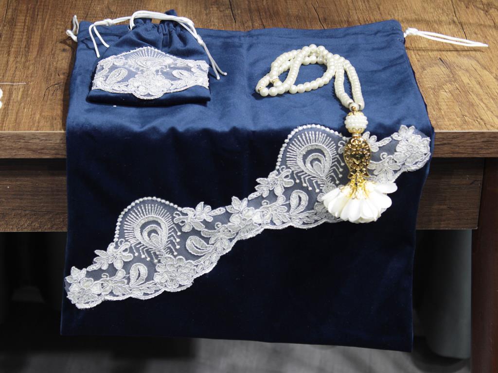 Ürün Adı: "Fransız Güpürlü Nadide Kapitoneli Kadife 7 Parça Bohça Seti Lacivert"
