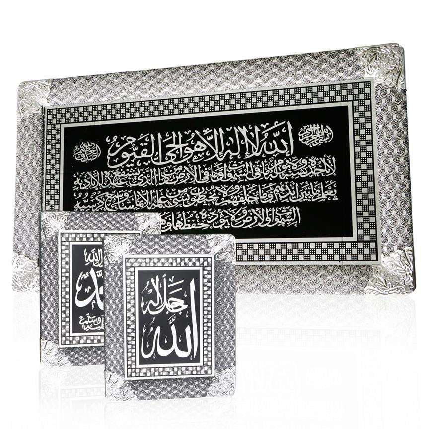 Teslimat ve Boyutlar: 1 x Bavary "Ayet-el Kürsi" 3 Parça Çerçeveli Dini İslami Tablo | Gümüş