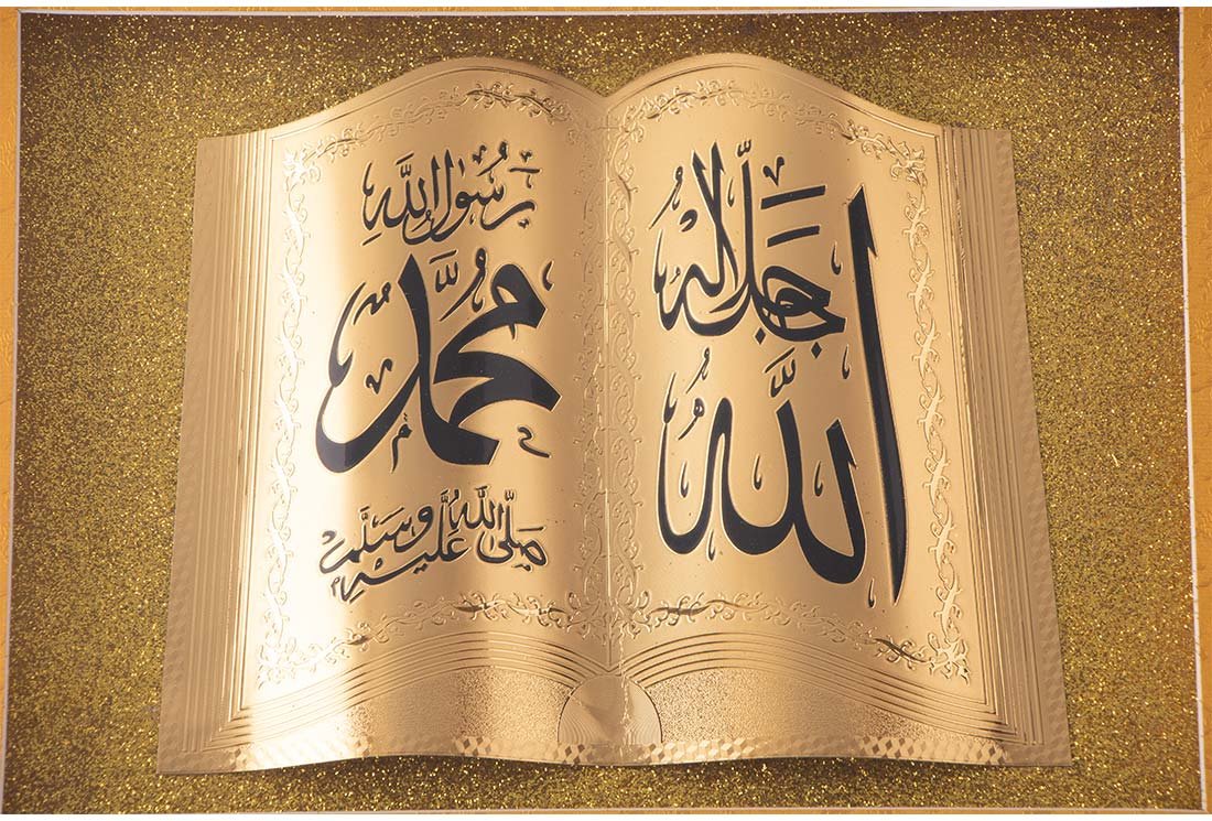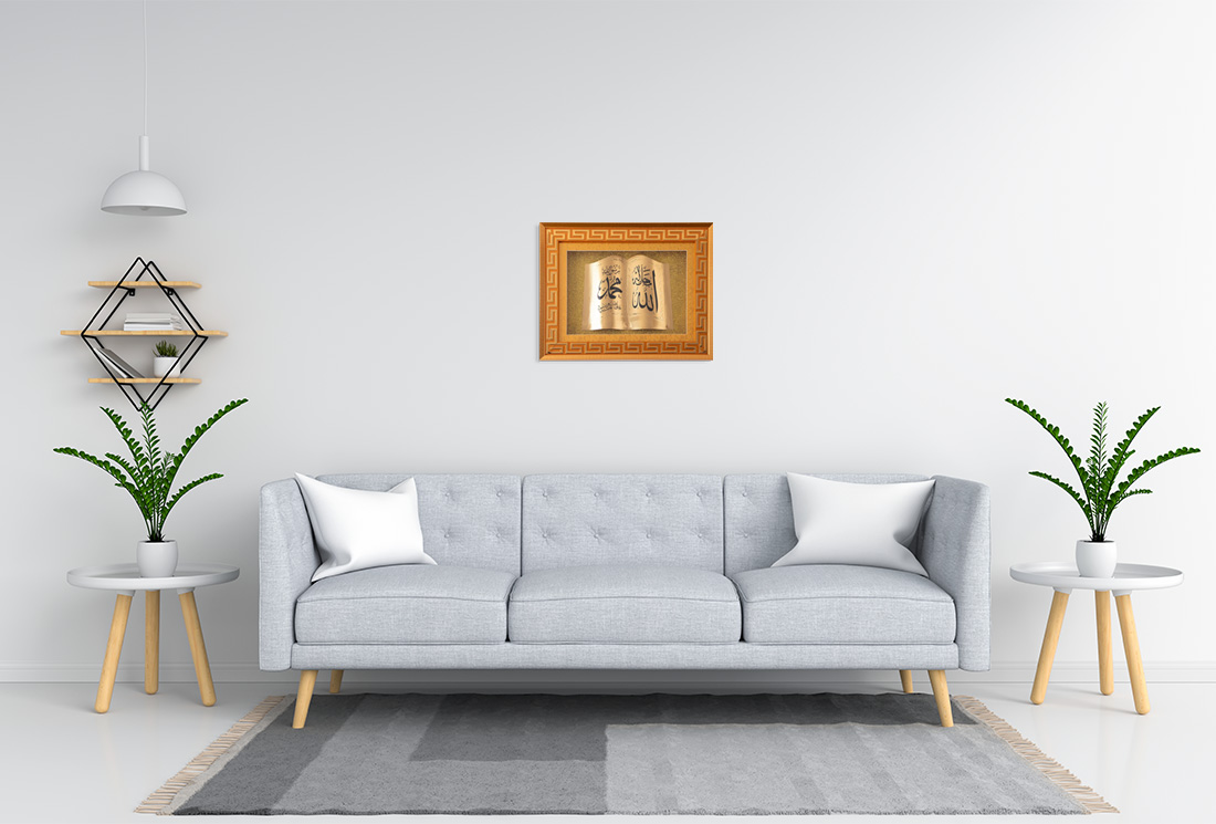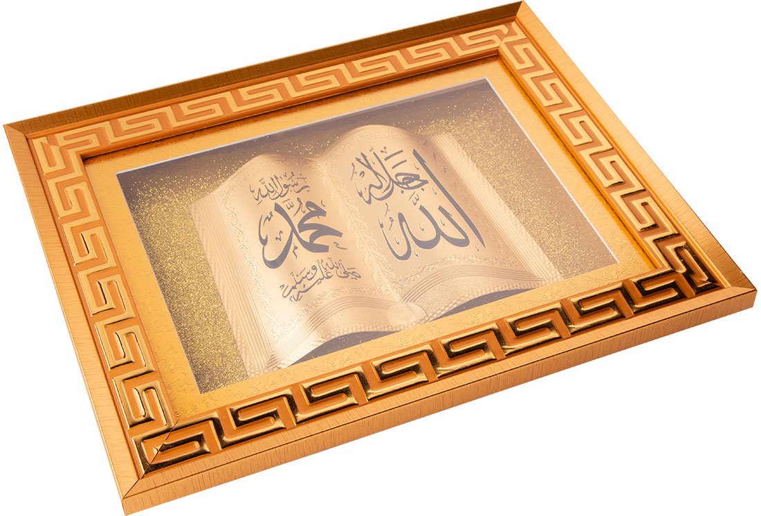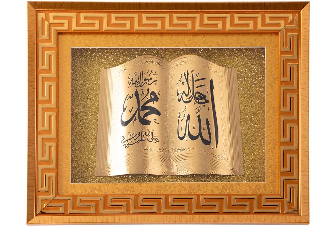 Teslimat ve Boyutlar: 1 x Dekonaz İslami Dini Dekoratif Tablo "Allah Muhammed" 40x30cm | Altın