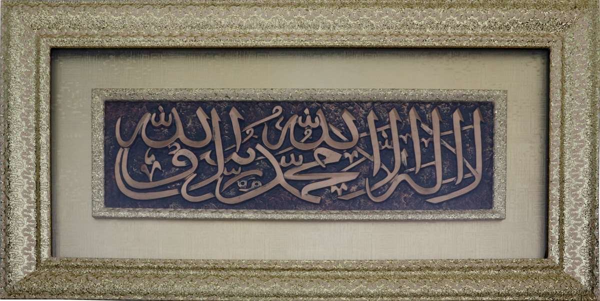 Teslimat ve Boyutlar: 1 x Dekonaz Lüks Büyük Boy Kabartmalı Yazılı "Kelime-i Tevhid" Dini Dekoratif Tablo Altın - 115x64 cm | Dek-0040