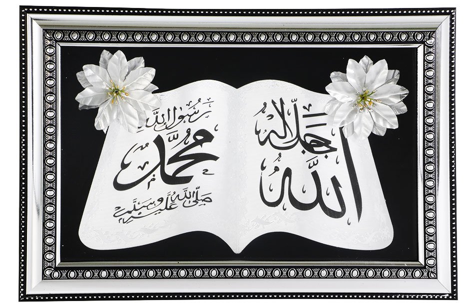 Teslimat ve Boyutlar: 1 x Dini Tablo "Allah ve Muhammed" Yazılı | Siyah ve Gümüş | TM-109-2