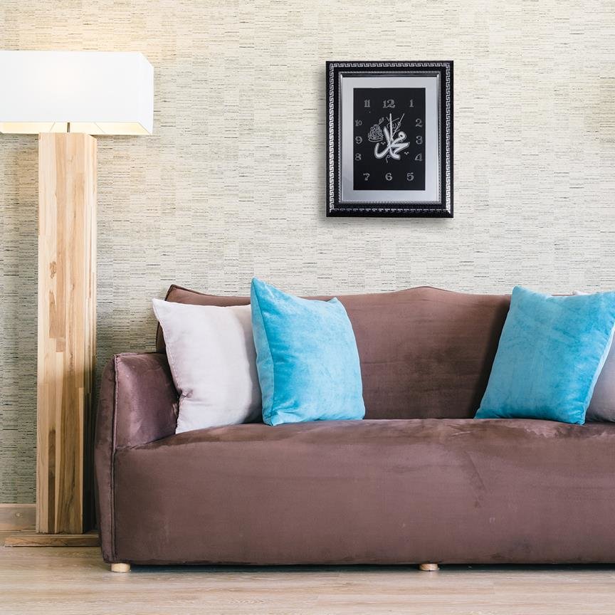Teslimat: 1x Dekonaz Hz. Muhammed Yazılı Duvar Saati | Siyah - Gümüş | IS4050-M-BS
