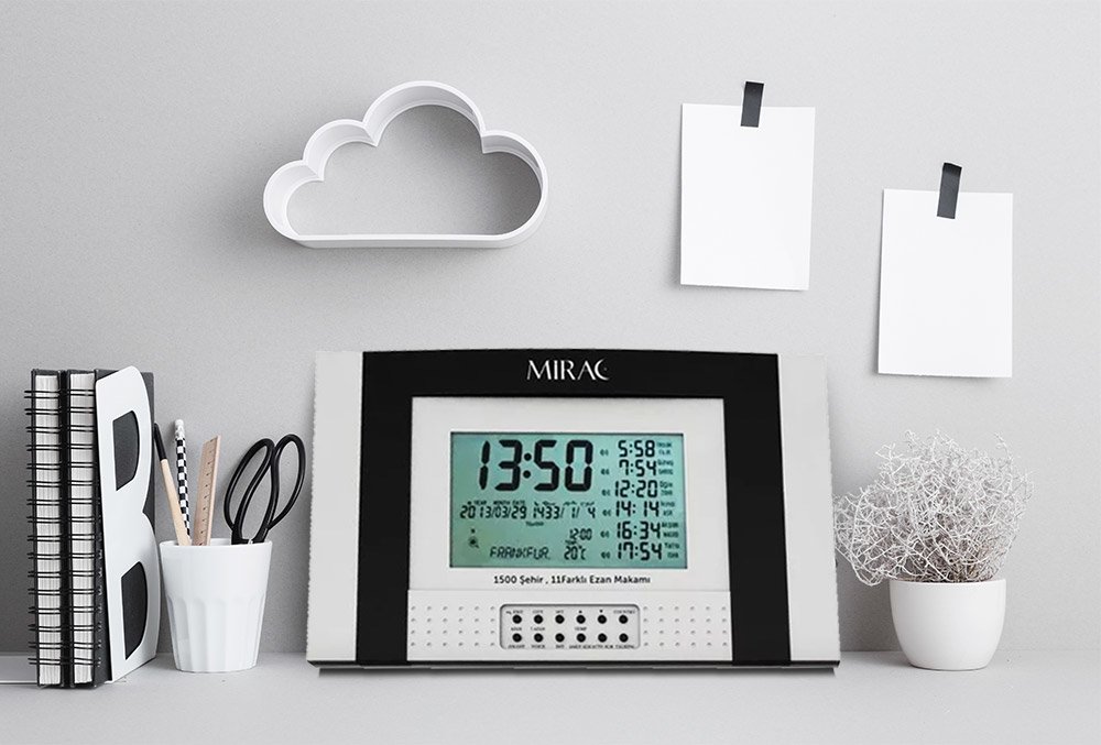 Teslimat ve Boyutlar: 1 x Miraç Otomatik Ezan Saati | Masaüstü | Çok Fonksiyonlu | Ezan-XL