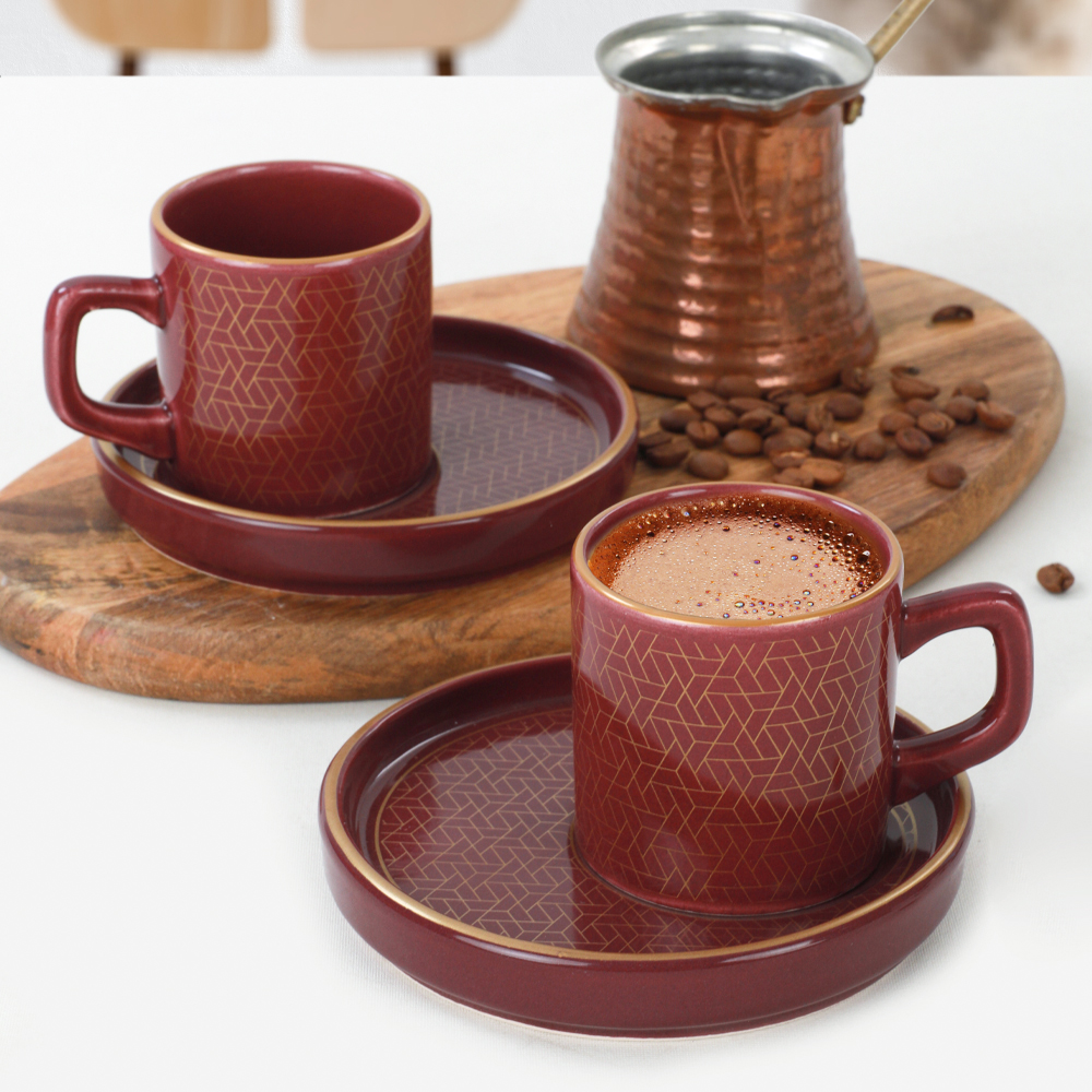 Kahve kültürünü tüm şıklığı ile yaşayabilmeniz için özenle hazırlanan Keramika 2 kişilik Dora Mürdüm kahve fincan takımı kahve saatlerinizin en nadide parçası olacaktır. Yeni ve özel formu ile tüm gözlere hitap edebilecek bu kahve takımı, ailenize ya da misafirlerinize en güzel sunumlarınızı hazırlamak için harika bir seçenek olacaktır. Ayrıca sevdikleriniz için hoş bir hediye arıyorsanız bu takım sizler için güzel bir seçenek olacaktır.